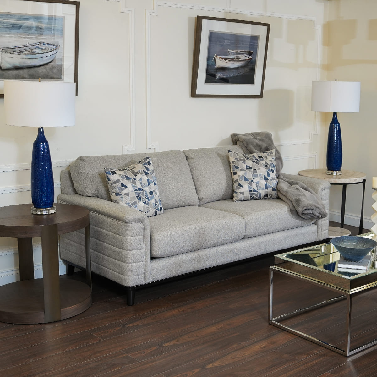 Sinuous spring construction seat foam: premium high-resiliency 2lb soft foam core. Back & seat cushion: semi-attached back, box seat leg type: 5" attached wood base special features: channel outisde arm