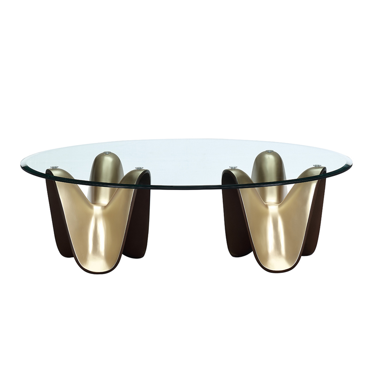 The Houston Table Collection is a stunning expression of modern artistry and refined functionality. Featuring center tables, corner tables, and end tables, each piece showcases a gracefully curved silhouette with a seamless walnut veneer top and a lustrous gold-finished interior. The bold contrast between warm wood tones and golden accents creates a sculptural elegance that elevates any living space, adding a touch of timeless luxury and harmony to your decor.