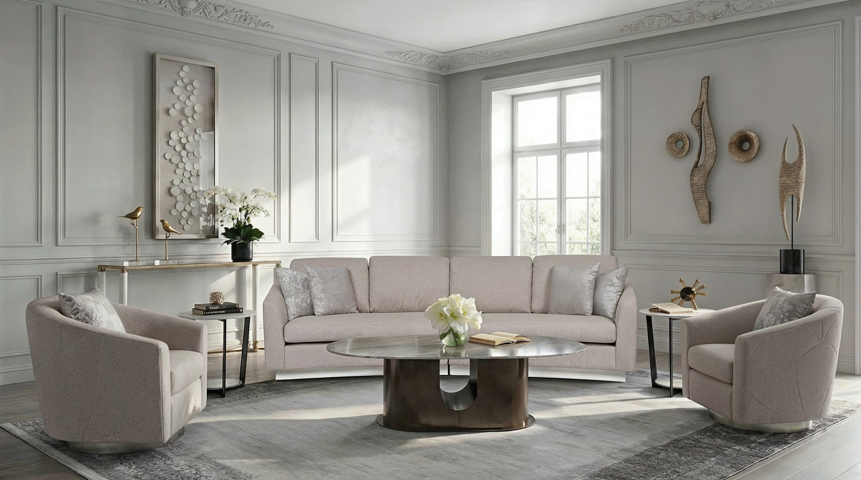 Experience luxury and comfort with the Jmsf Sofa Set, designed to elevate your living space with its elegant champagne silvery finish. Crafted from durable birch wood, it offers stability and strength, while the high-density foam ensures superior comfort and support. Upholstered in a premium blend of polyester and velvet fabric, this sofa set exudes sophistication with a soft and inviting feel—perfect for modern and stylish interiors.