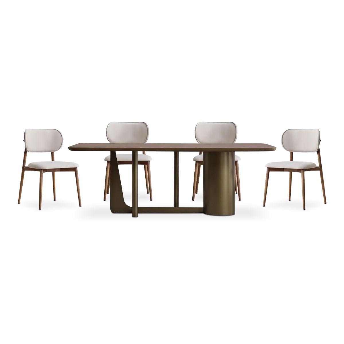 The LAURA Dining Table Set is a perfect combination of modern design and durability, making it a stylish centerpiece for any dining space. Dining Table: Crafted from MDF, it offers a sturdy and elegant surface, complemented by a metal design foot that enhances stability while adding a contemporary touch. Dining Chairs: Designed for both comfort and style, the chairs feature a wooden frame for durability and are upholstered in soft fabric, providing a cozy and inviting dining experience.