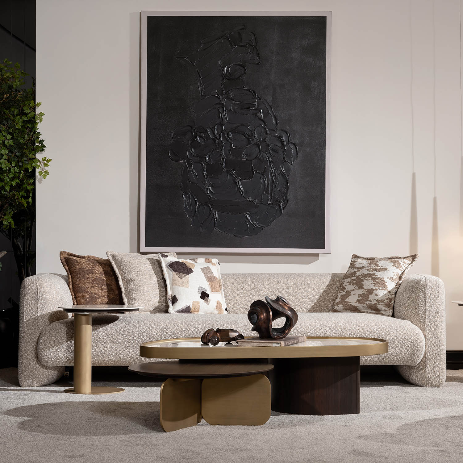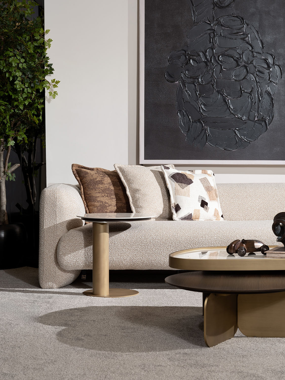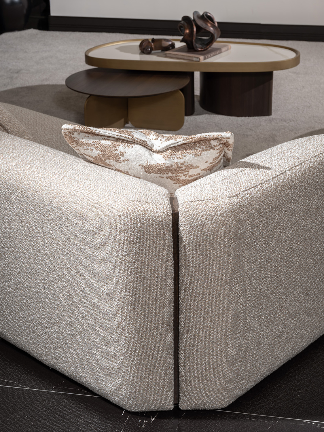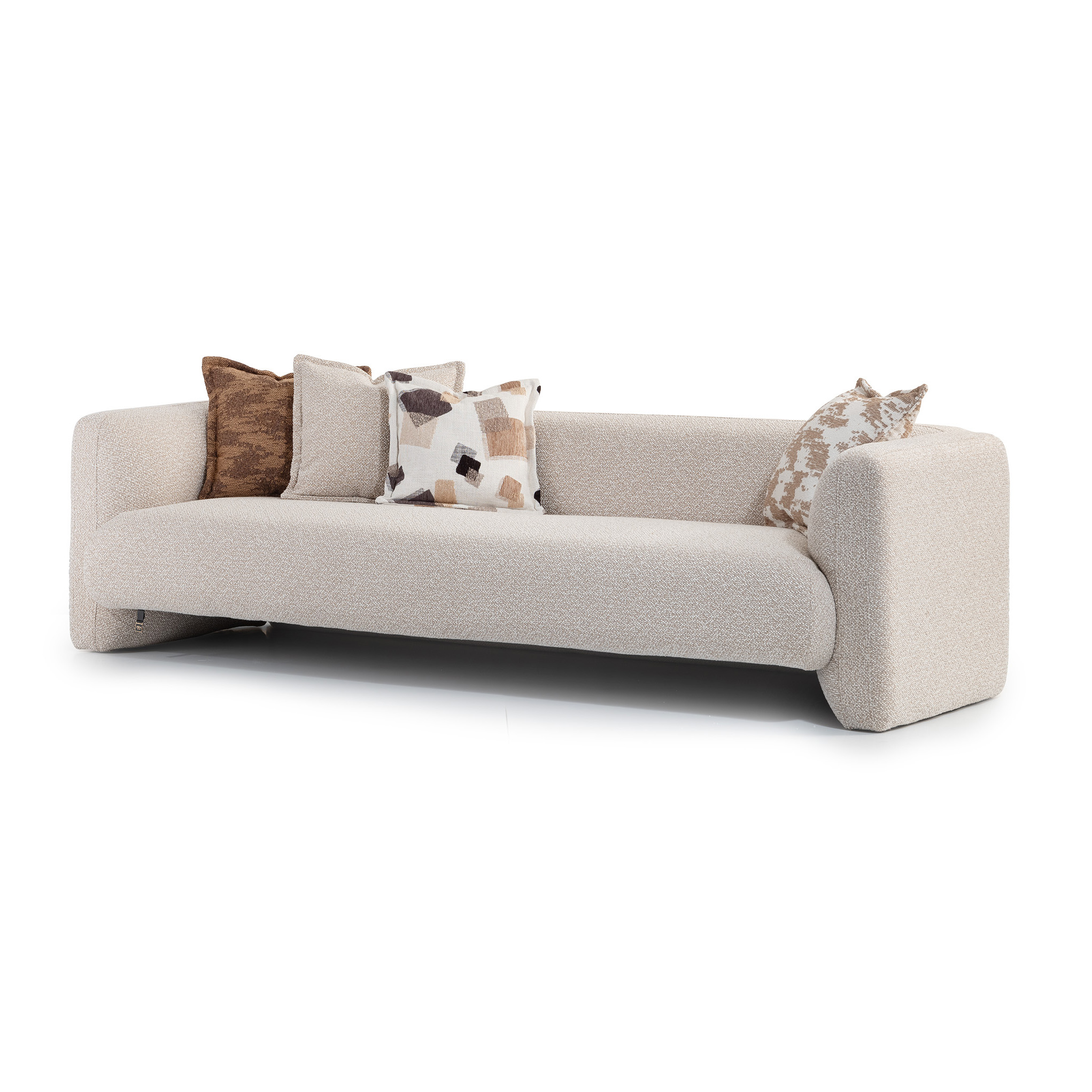 Le mans 4-seater sofa, elegantly designed with light colored fabric upholstery and complemented by earth-tone pillows, creating a harmonious blend of modernity and comfort. Crafted with light-colored fabric upholstery, our sofa set exudes a sense of openness and sophistication. The light hues create an airy and inviting atmosphere, making it the perfect centerpiece for any modern living space. The combination of light-colored fabric upholstery and earthtone pillows creates a harmonious blend of modernity and comfort. This thoughtful pairing ensures that the sofa set not only looks stylish but also feels inviting and cozy, inviting you to relax and unwind in style. With its versatile design and stylish aesthetics, our modern sofa set is the perfect addition to any contemporary living space. Whether you are hosting guests or enjoying a quiet evening at home, this sofa set offers both comfort and style, making it a versatile and timeless choice for your home.