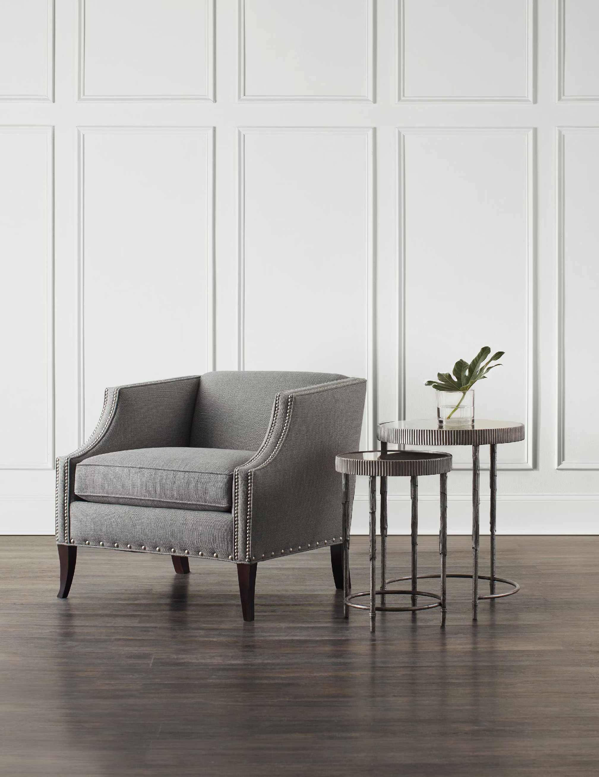 Organic and tactile, these accent nesting tables are rich in texture, crafted of iron and mirror with a silver finish over iron and a mirrored top. Add a glamorous modern twist to any space. The large table measures 19.5 inches in diameter and 24 inches high, while the small table is 14 3/8 inches in diameter by 19 ¾ inches high. Looking for the perfect piece of jewelry for your room? Look no further than Hooker's line of accents. Select from character-filled and functional accent tables, chests, credenzas and console tables. Place front and center of your hallway, living room or foyer and top with things you love. Now that's instant style.