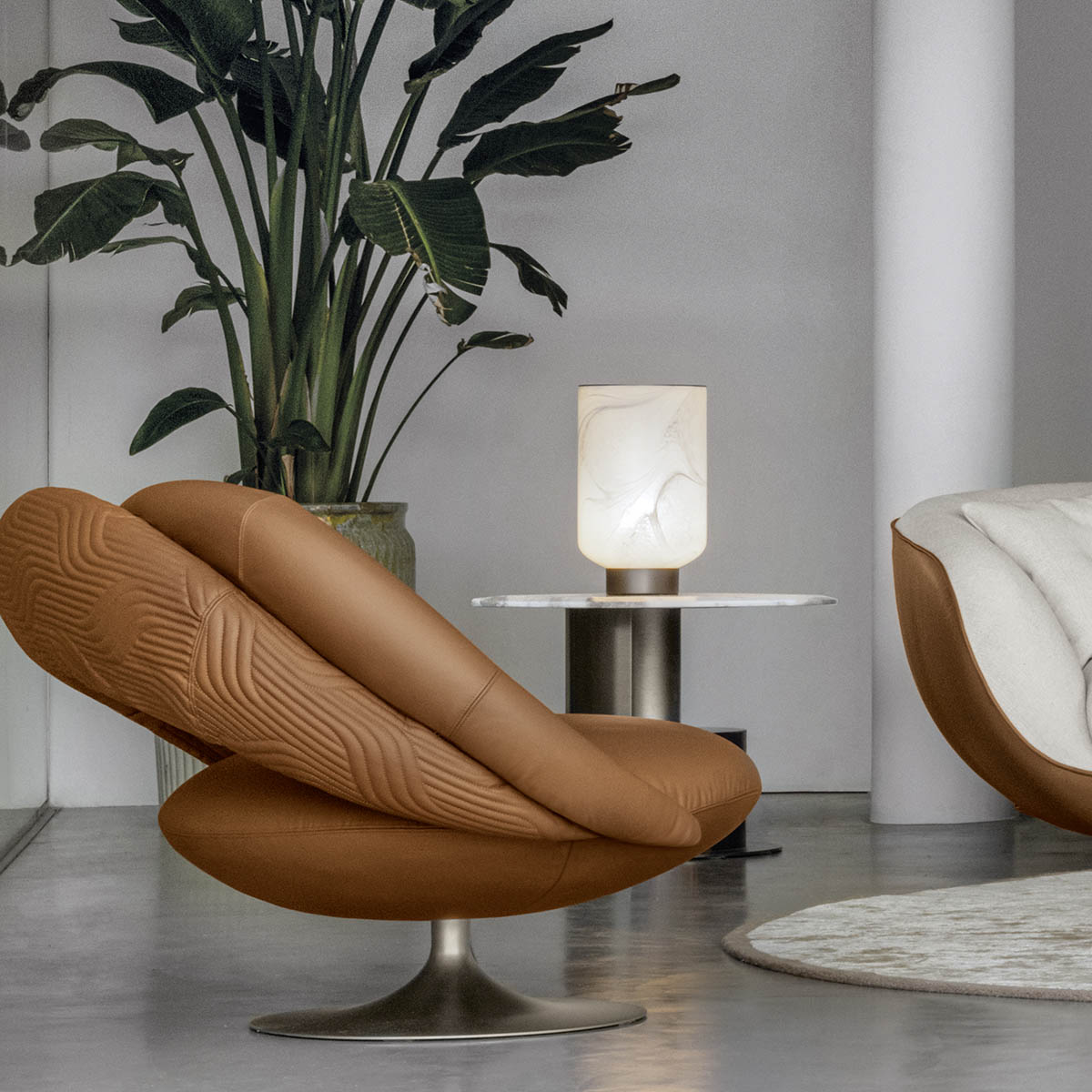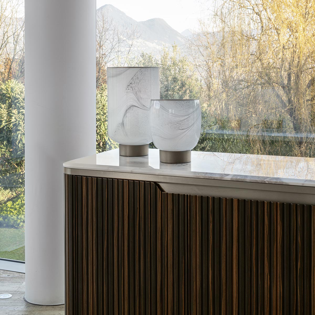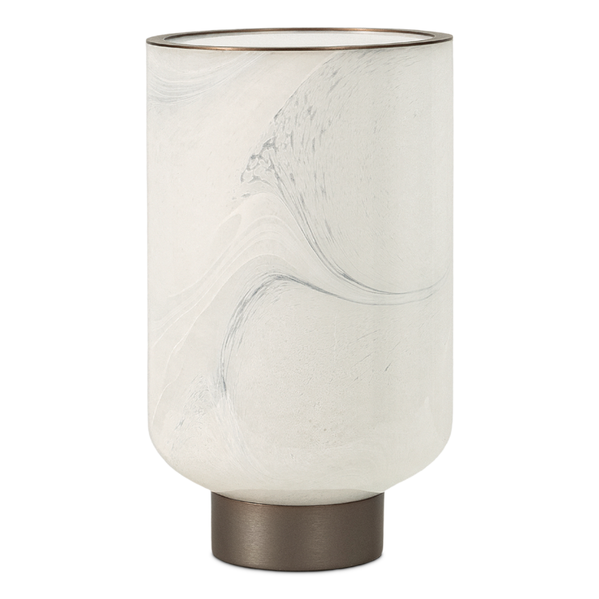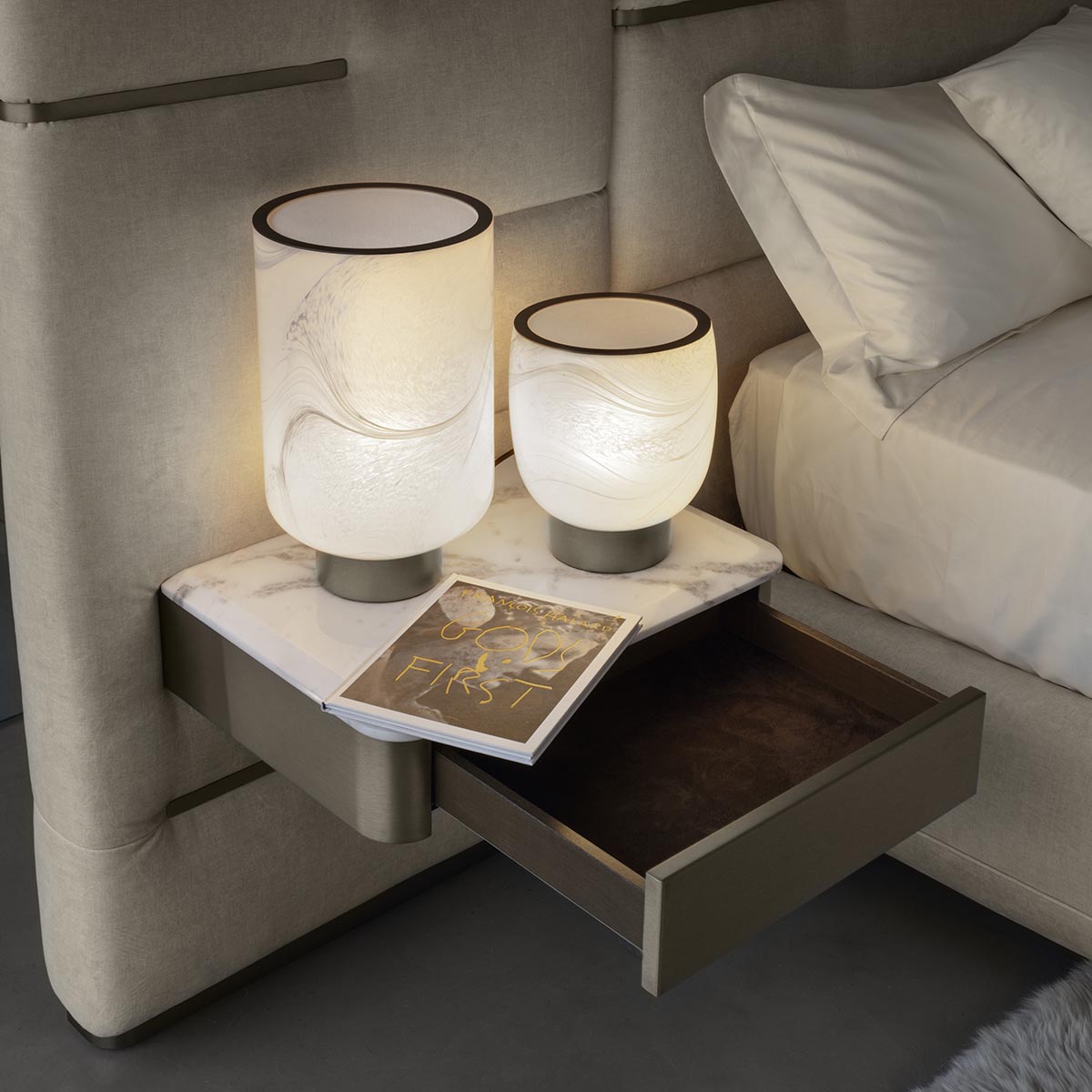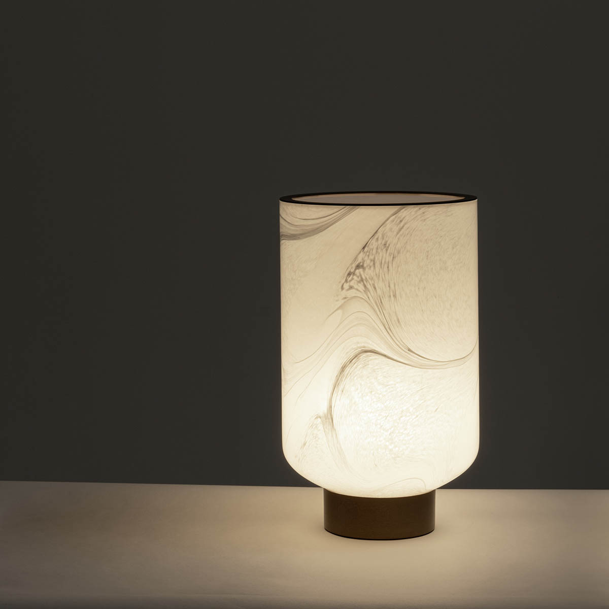 Medium lamp in marbled finish Venetian "Murano" blown glass with base in satined galvanized titanium finish stainless steel. One E27 3000°K white led light, max 10W, needed (not included).