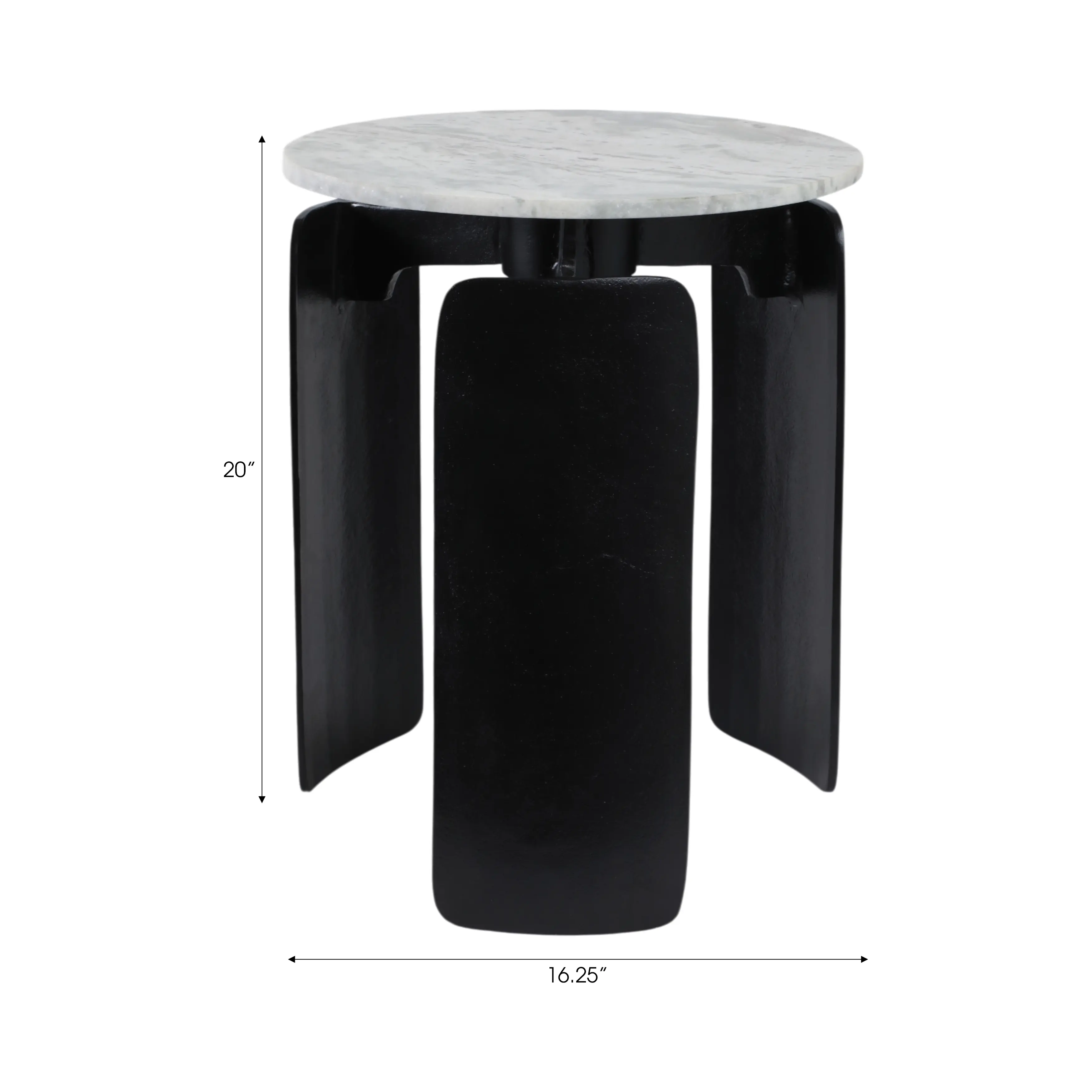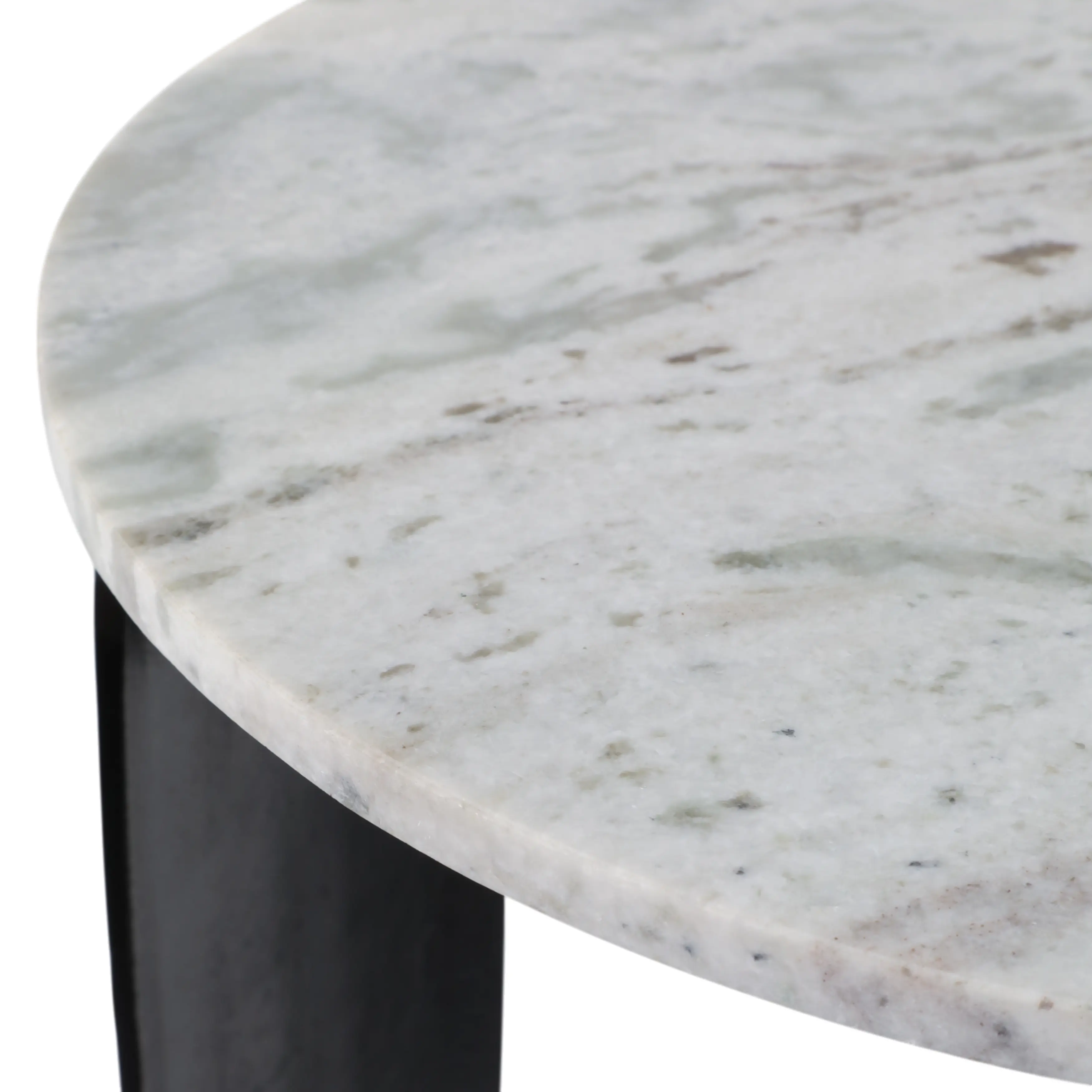 The Marble Top 3-Footed Accent Table pairs a polished marble top with three sculptural metal legs, offering a refined and contemporary accent.