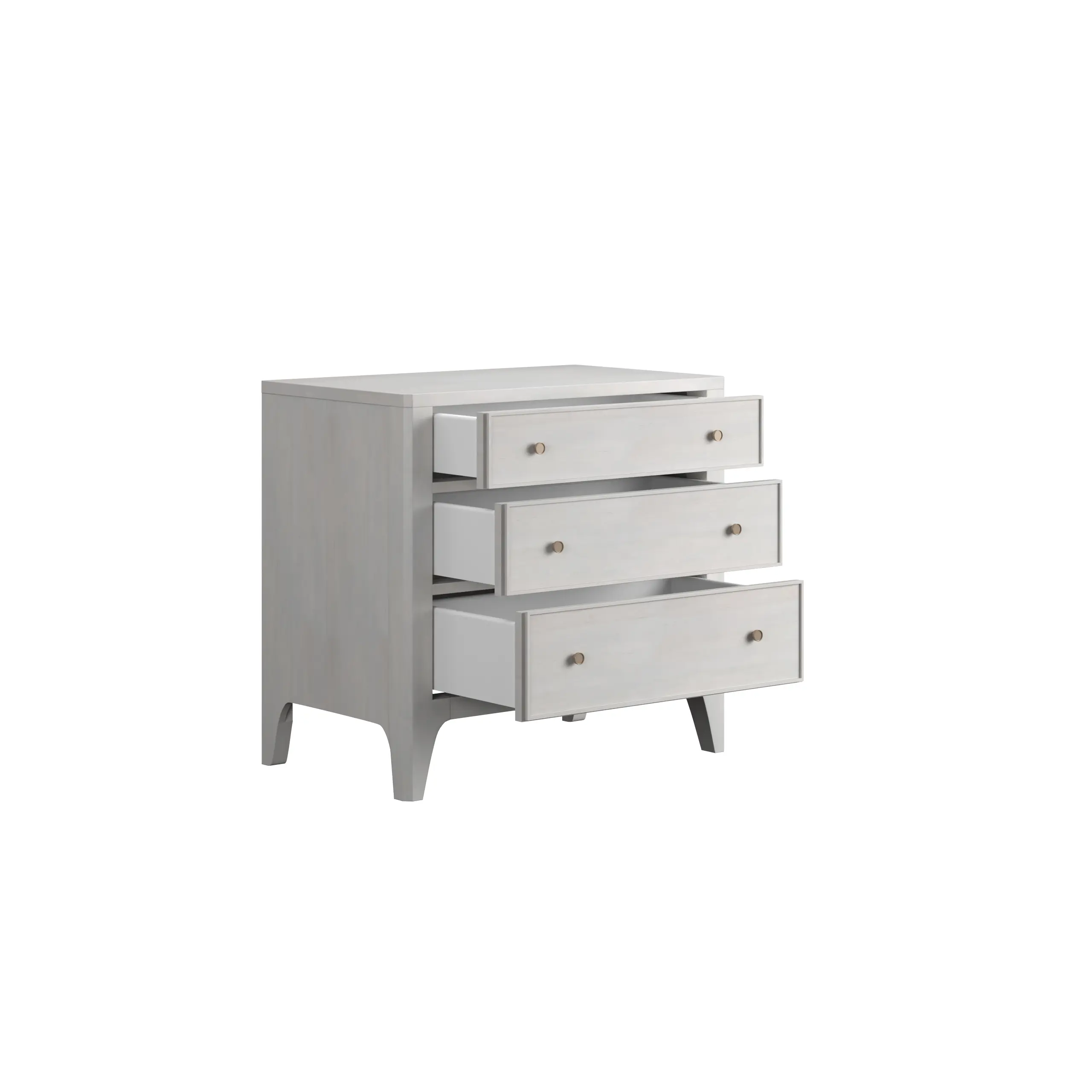 Mezzanine three drawer nightstand by A.R.T. Furniture captures the charm of vintage romance blended with modern simplicity, inspired by classic French café style. Crafted in maple veneer with a refined dove gray finish, it is accented with nickel hardware that introduces a subtle metallic shimmer. Designed with timeless elegance and practical storage in mind, this nightstand brings warmth, character, and understated sophistication to any bedroom setting.