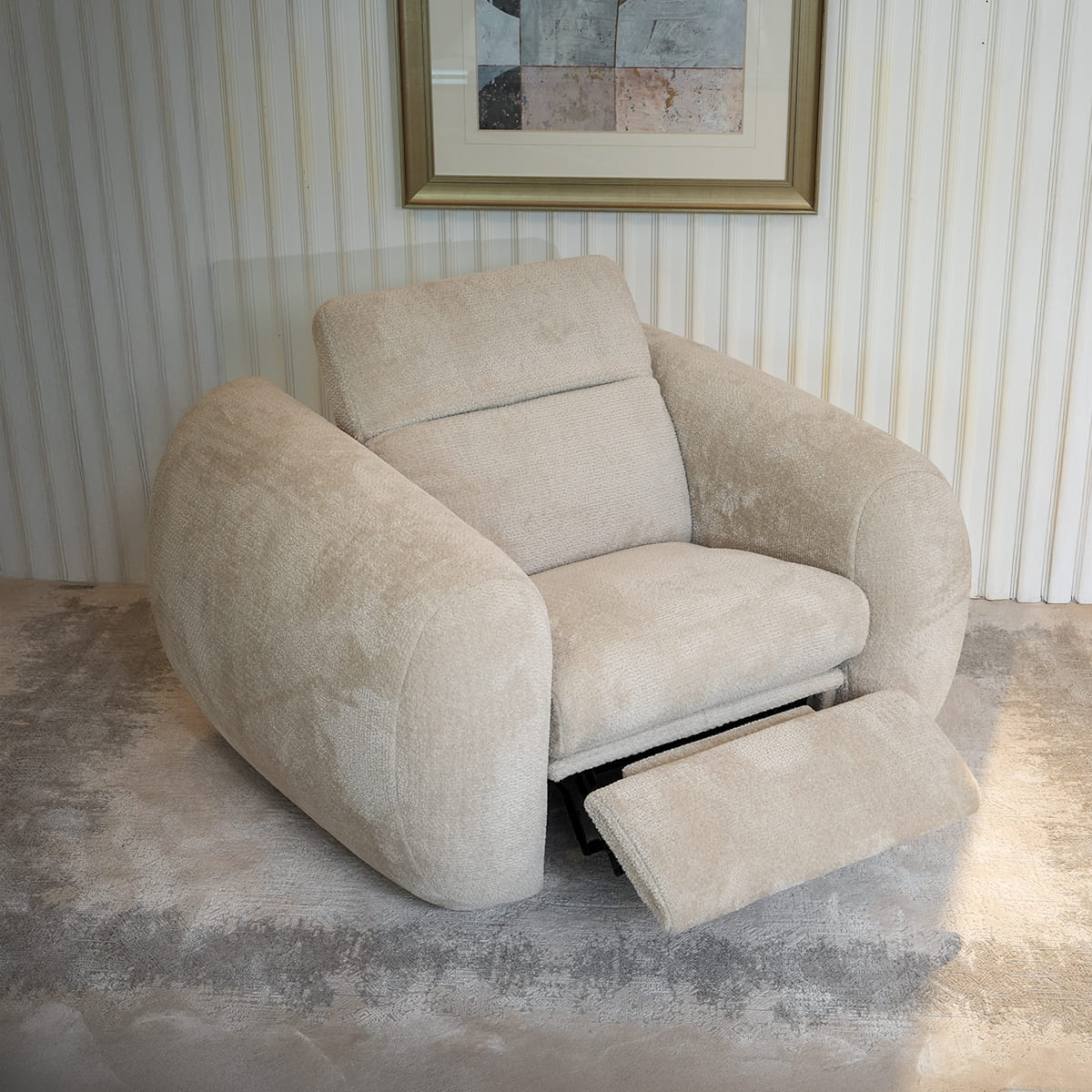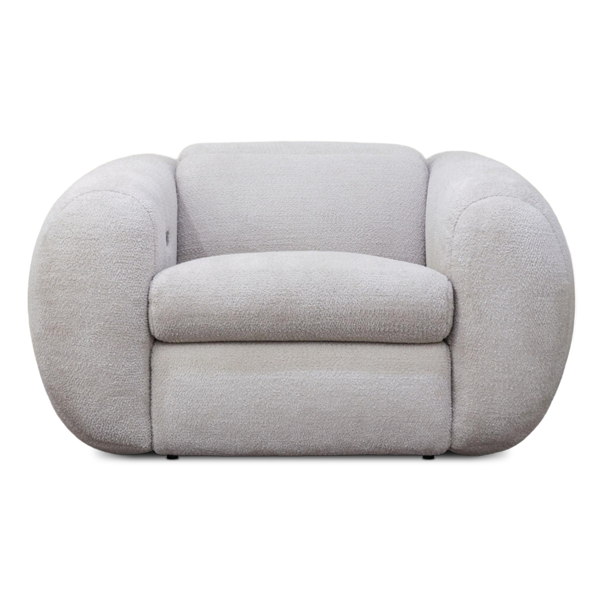 Oversized and sumptuous arms showcase the deeply lavish comfort of the Montreaux power motion chair. The push of a button on the inside of an arm smoothly moves the seat from upright to reclined, with added relaxation provided by a power headrest that raises and lowers.