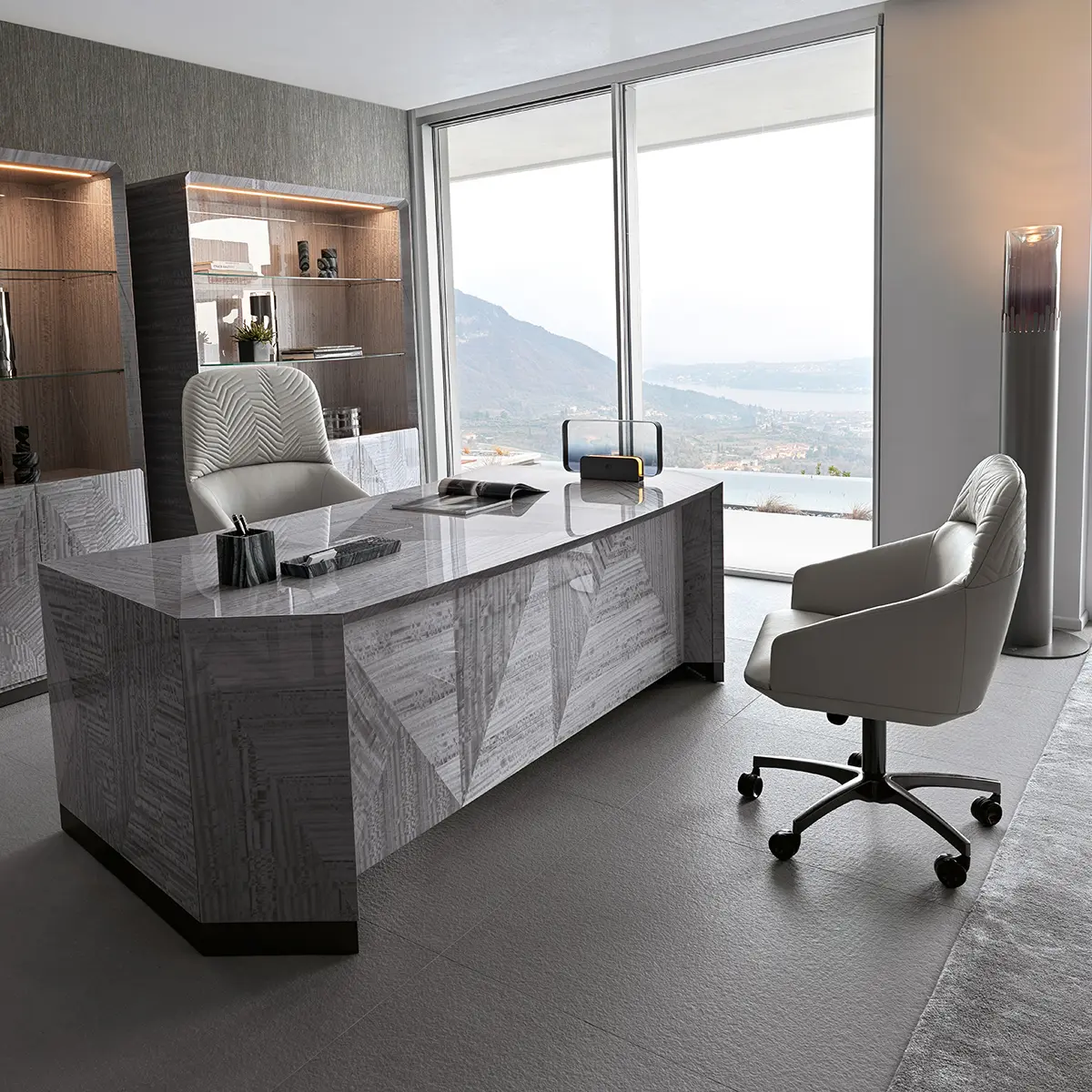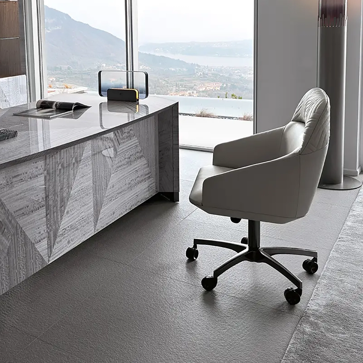Moonlight Guest Chair – Giorgio Collection is a sophisticated seating piece designed to elevate executive and contemporary office interiors with refined luxury. Upholstered in premium materials such as fine leather, nubuck, velvet, or suede fabric, it offers a plush and comfortable seating experience. The quilted backrest, embellished with the embroidered Giorgio Collection logo, adds a distinguished decorative touch, while the satin grey nickel stainless steel base enhances durability and modern elegance. With its sleek silhouette and exquisite detailing, this guest chair embodies prestige, comfort, and timeless Italian craftsmanship.