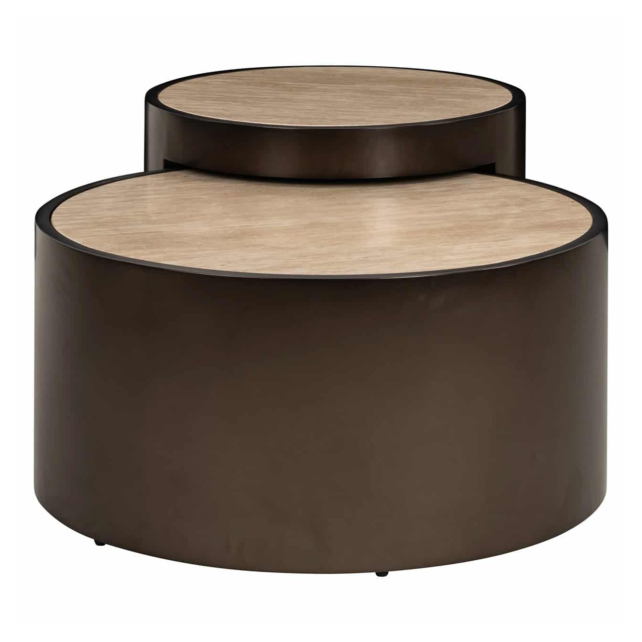 The Ronson coffee table set consists of two stylish tables with a luxurious faux travertine top and bronze-colored stainless steel bases. This set combines natural elegance with a modern finish and offers both functionality and sophistication. Perfect as a duo in the sitting area or placed separately for a playful effect.