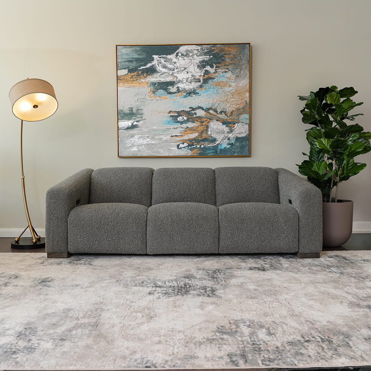 Introducing the Siena Fabric Power Motion Sofa, where modern design meets ultimate comfort. This power motion sofa features a linear silhouette and angled arms, creating a softer and more inviting look for your living space. With its generous proportions and tightly upholstered seat, the Siena sofa offers a comfortable and cozy seating experience. The sleek design is complemented by the convenient power motion technology, allowing you to effortlessly adjust the outside seats and raise the headrests for a restful recline. Crafted with precision, the Siena Fabric Power Motion Sofa is not only stylish but also functional. USB ports are cleverly integrated into the design, providing added convenience for charging your devices while you relax. Measuring 100 inches in width, 43 inches in depth, and 33 inches in height, this sofa offers ample space for you and your guests to unwind and enjoy moments of relaxation. Elevate your living room with the Siena Fabric Power Motion Sofa, where modern aesthetics and plush comfort come together seamlessly.