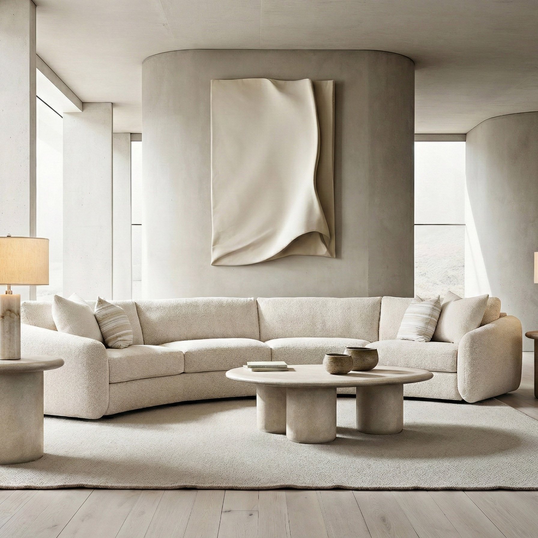 Inspired by midcentury pit sectionals, the Soleil fabric sectional has an exaggerated crescent shape that offers deep comfort and sleek lines. The angled back provides the ultimate in relaxation.