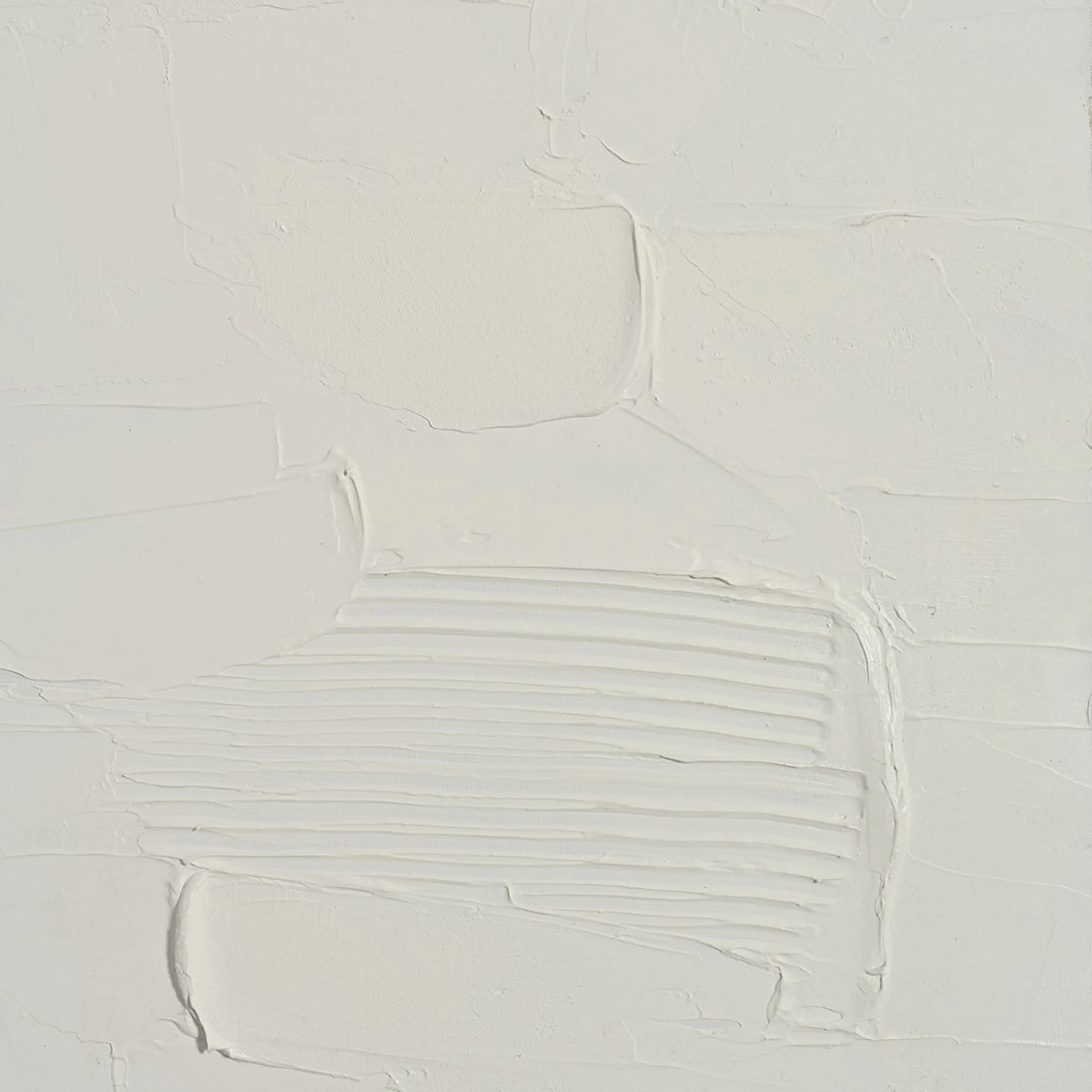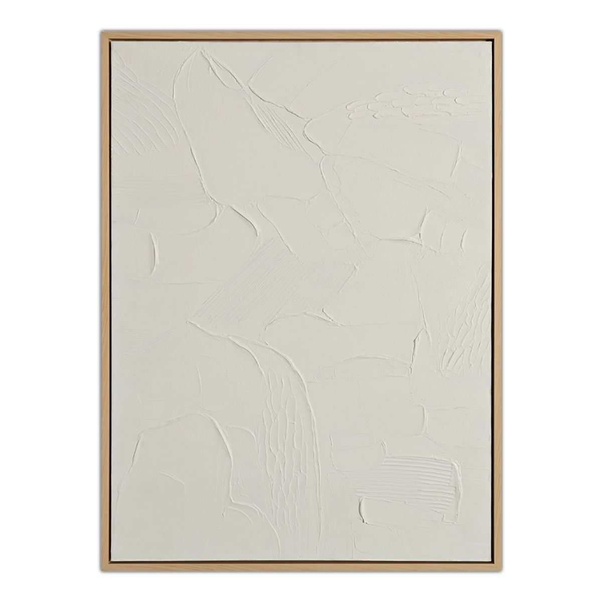 This Textured Painting on Canvas in white features sculptural detailing framed in wood, offering a minimalist yet striking centerpiece for contemporary spaces.