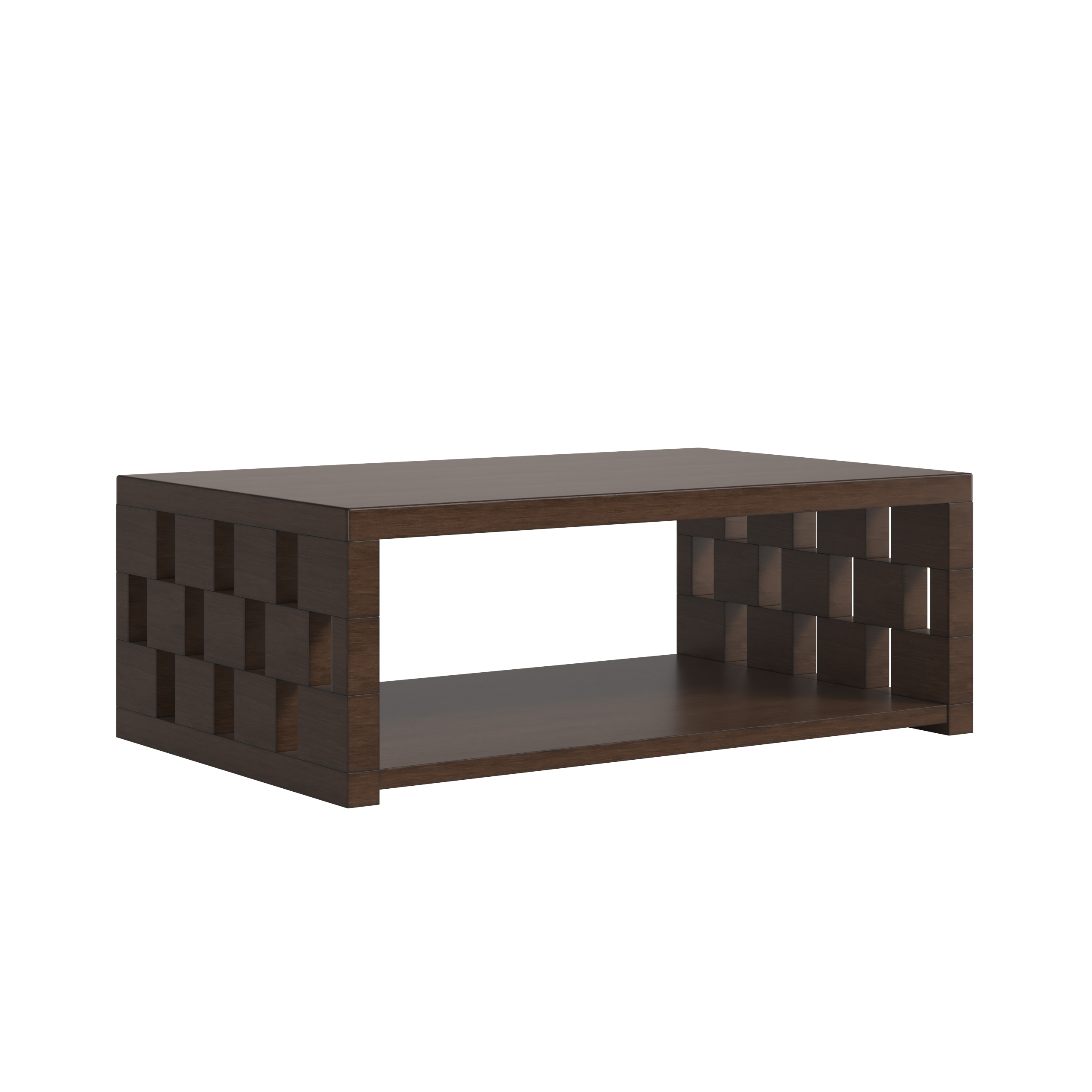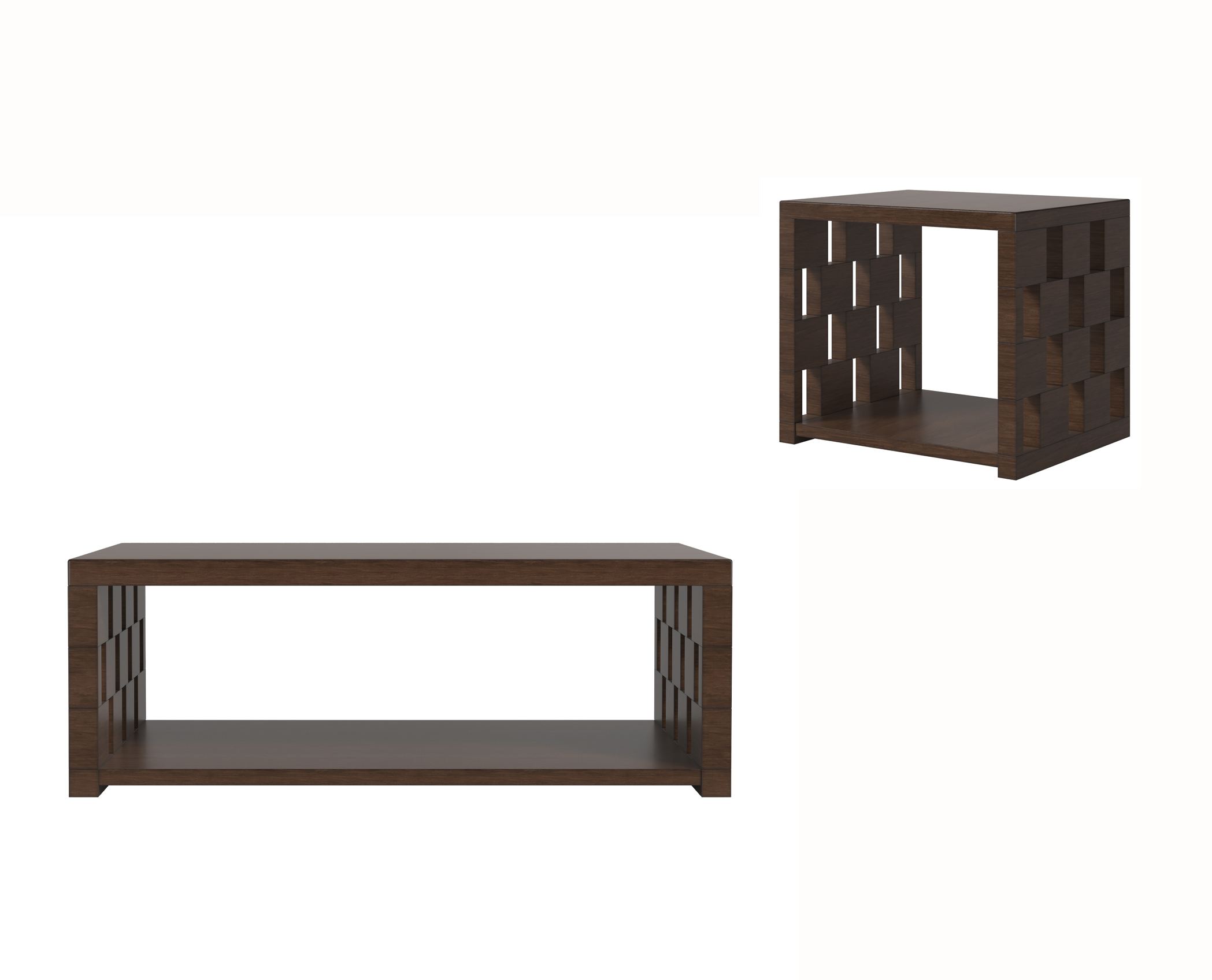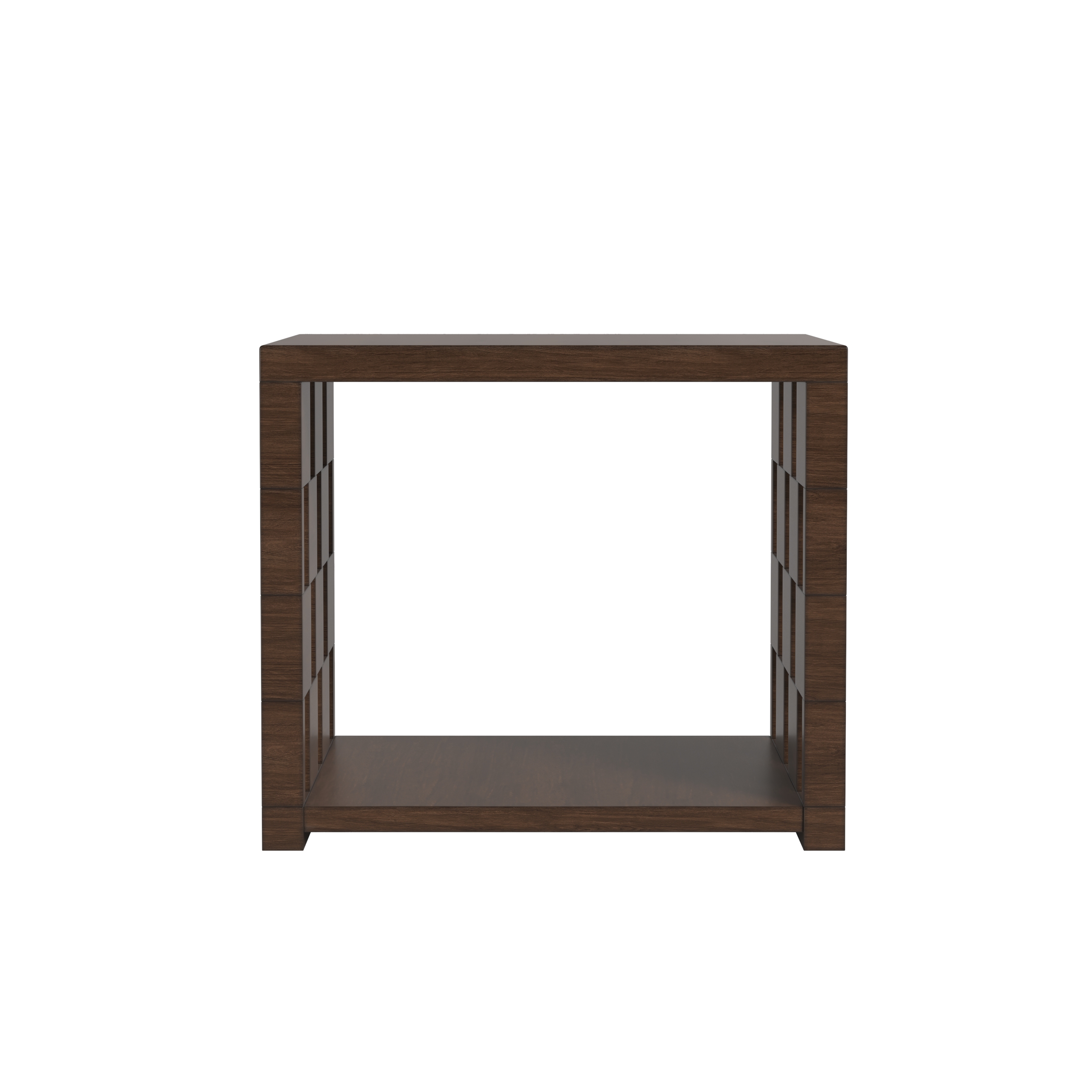 Verge table set by A.R.T. Furniture showcases a unique handcrafted walnut finish that is beautifully balanced by the clean lines of its rectangular tabletop. Open geometric side panels introduce captivating visual texture and a touch of modern artistry, while the lower shelf offers practical space for storage or display. With its substantial form and bold yet refined presence, Verge table set delivers both functionality and sophisticated style, creating a striking focal point with understated drama.