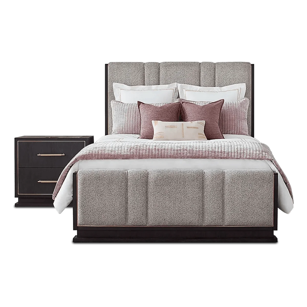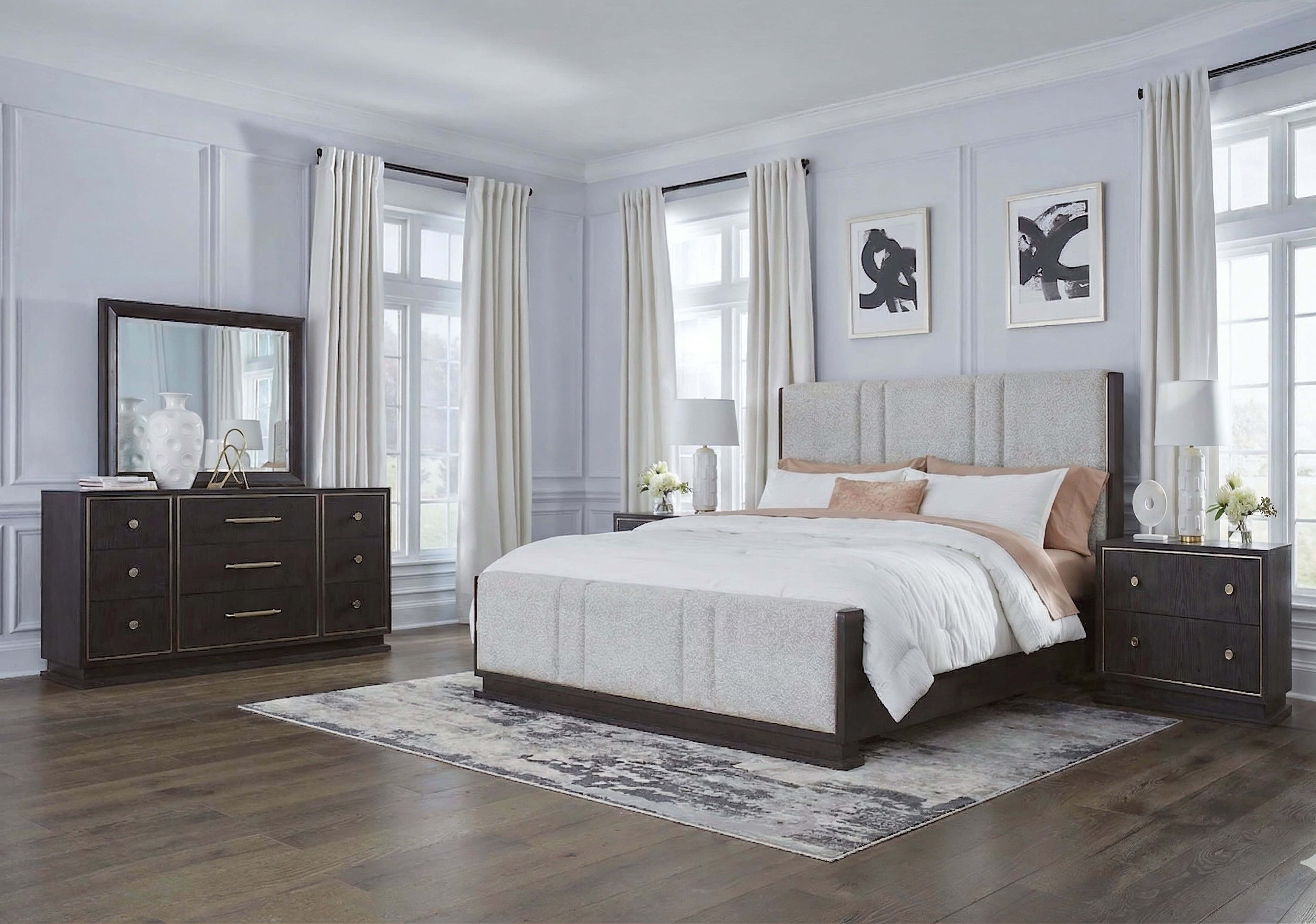 The Wilshire collection is the thoughtful detailing and dark finishes exude elegance. The dark tones and shimmering accents of the Wilshire bedroom bring a touch of class to the cozy, intimate feel of your bedroom atmosphere. Constructed of poplar wood solids with hickory veneers in a merlot finish.